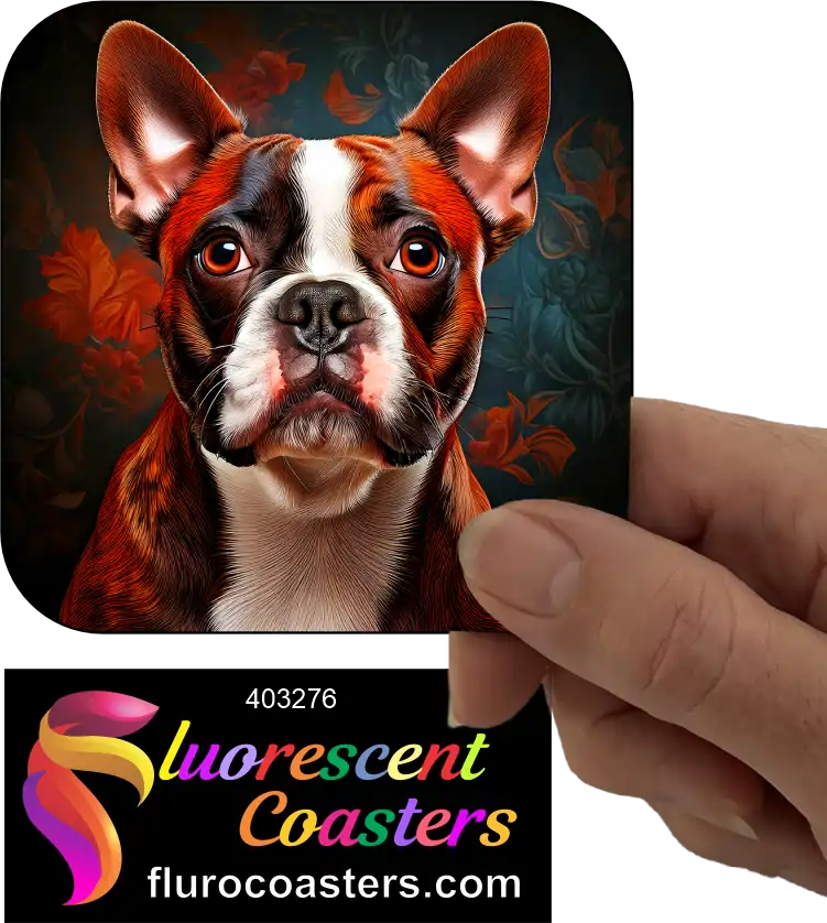 Fluorescent Coasters - Red Boston Terrier Dog 2, Terrier Dogs, 403276