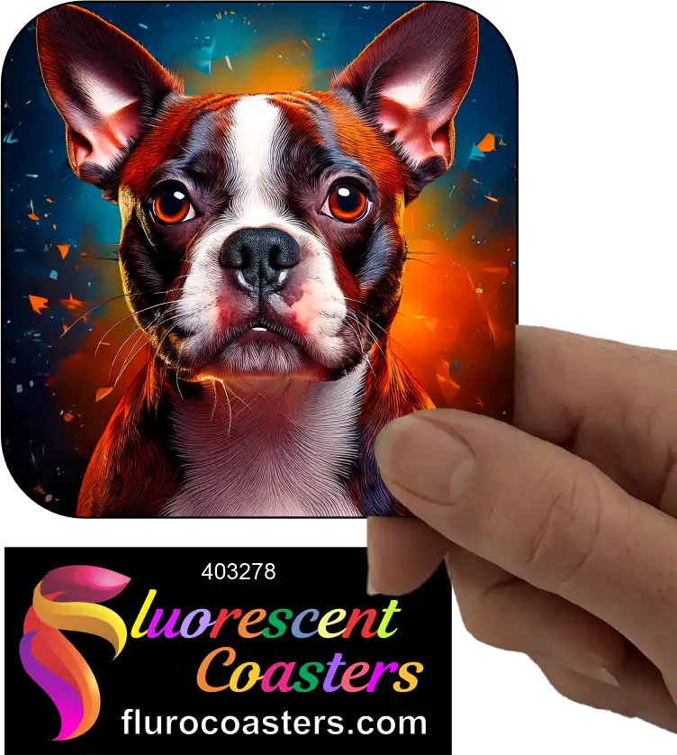 Fluorescent Coasters - Red Boston Terrier Dog 4, Terrier Dogs, 403278