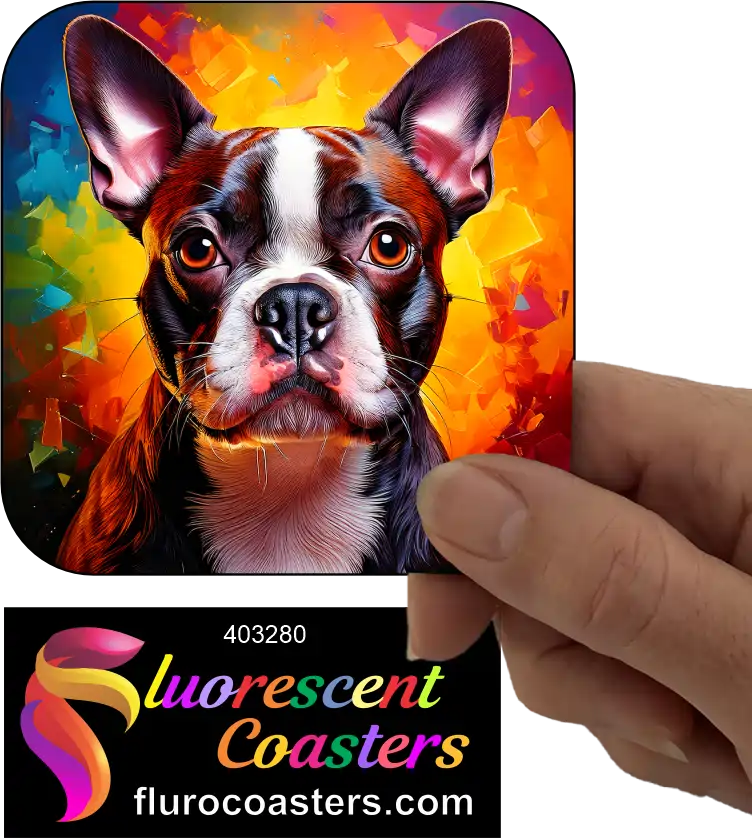 Fluorescent Coasters - Red Boston Terrier Dog 6, Terrier Dogs, 403280