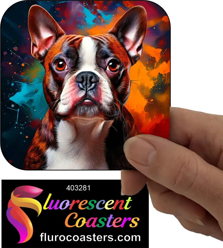 Fluorescent Coasters - Red Boston Terrier Dog 7, Terrier Dogs, 403281