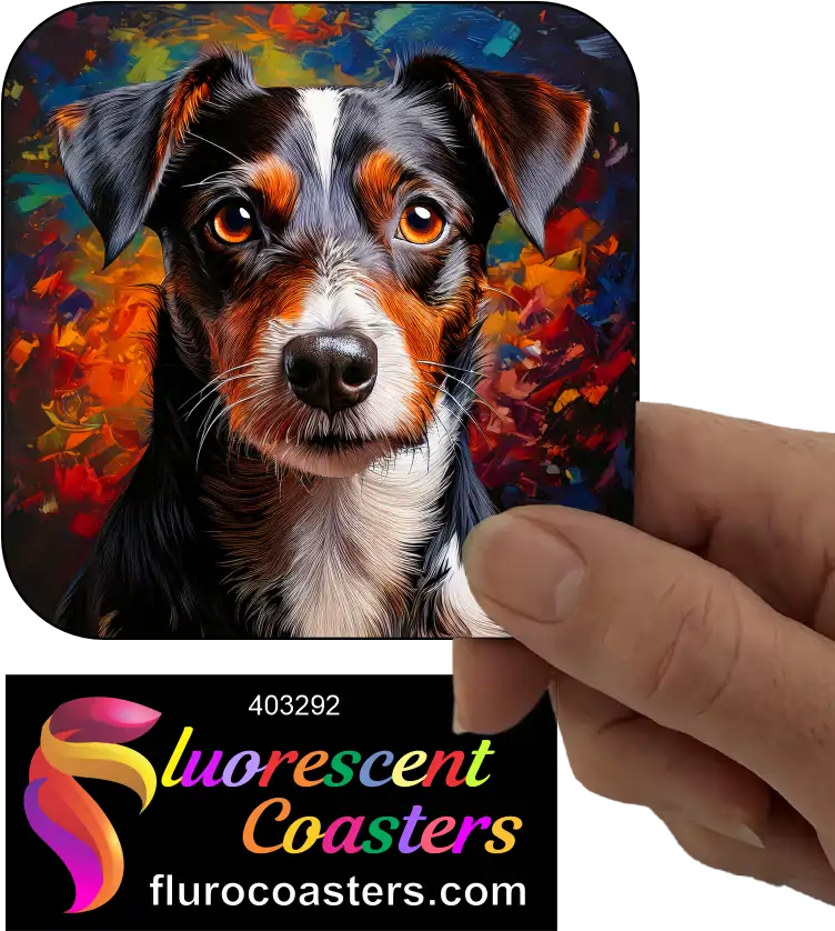 Fluorescent Coasters - Black Jack Russell Terrier Dog 1, Terrier Dogs, 403292