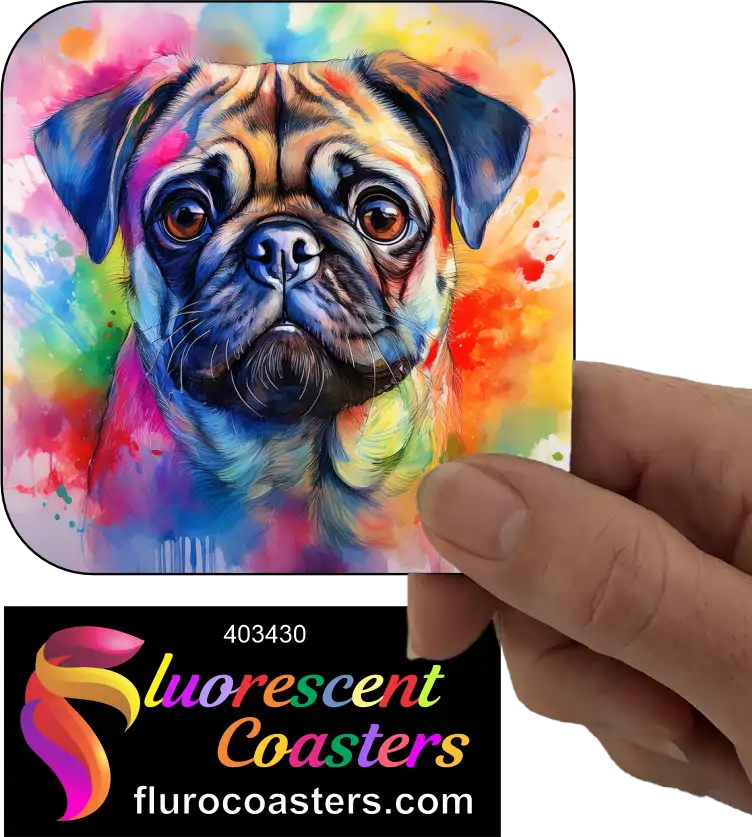 Fluorescent Coasters - Pug Dog 14, Pug Dog, 403430