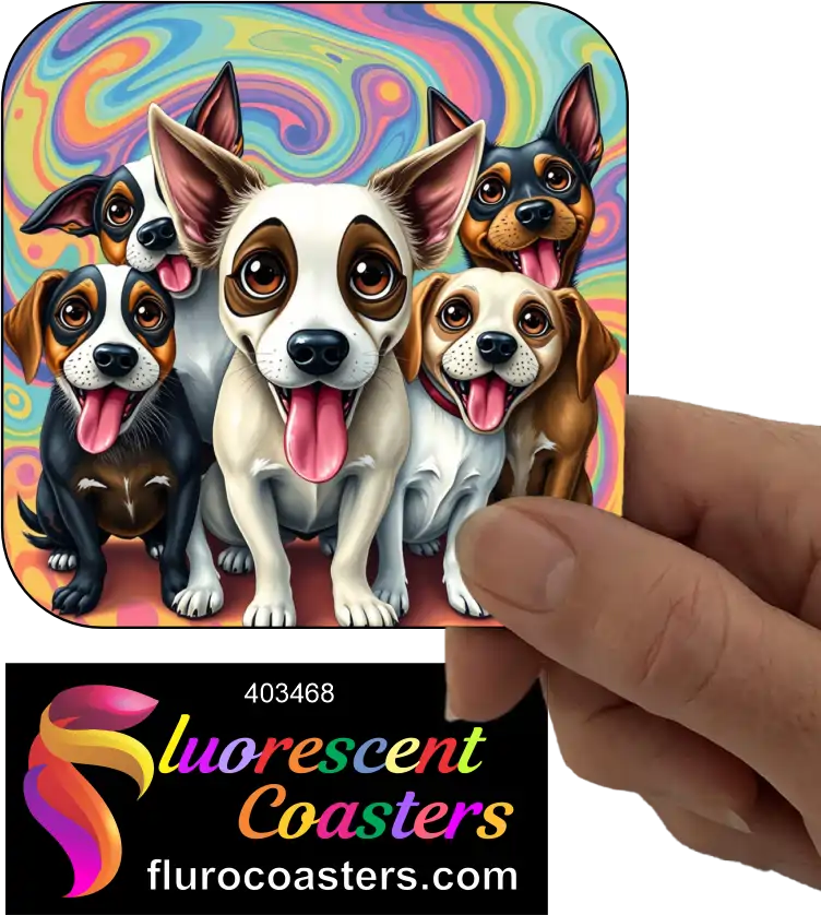 Fluorescent Coasters - Group Of Dogs 4, Humour / Cartoon Dogs, 403468