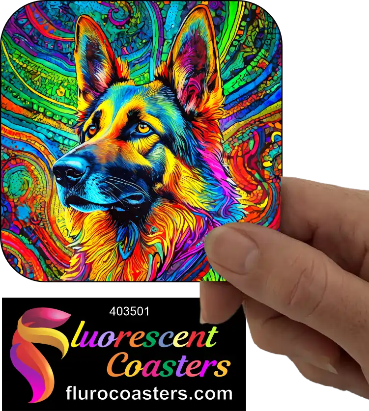 Fluorescent Coasters - German Shepherd Abstact 5, Shepherd, 403501