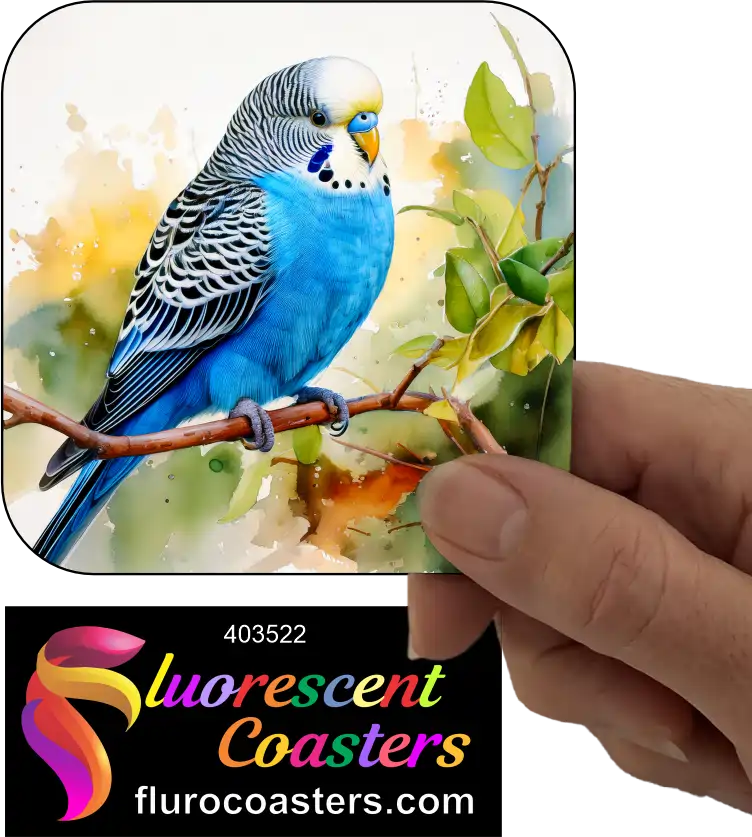 Fluorescent Coasters - Blue Budgie Buggerigar 2, Birds, 403522
