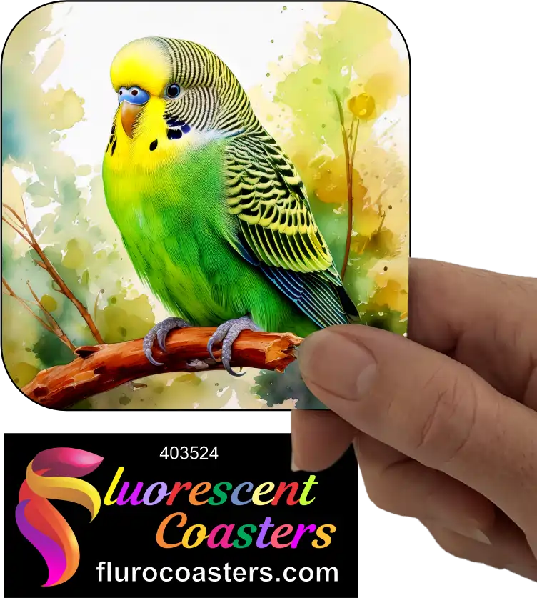 Fluorescent Coasters - Green Budgie Buggerigar 2, Birds, 403524