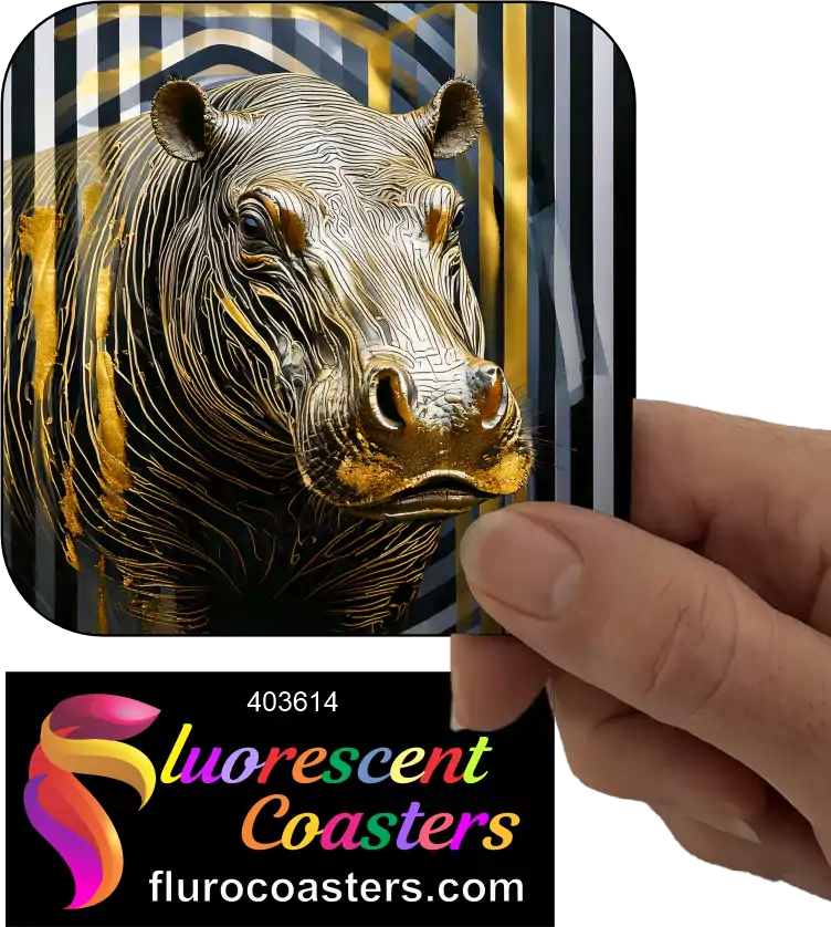 Fluorescent Coasters - Hippo Gold Abstact, African Wildlife, 403614