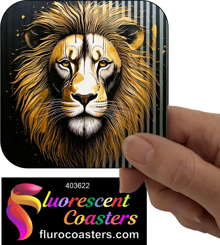 Fluorescent Coasters - Lion Gold Abstact, African Wildlife, 403622