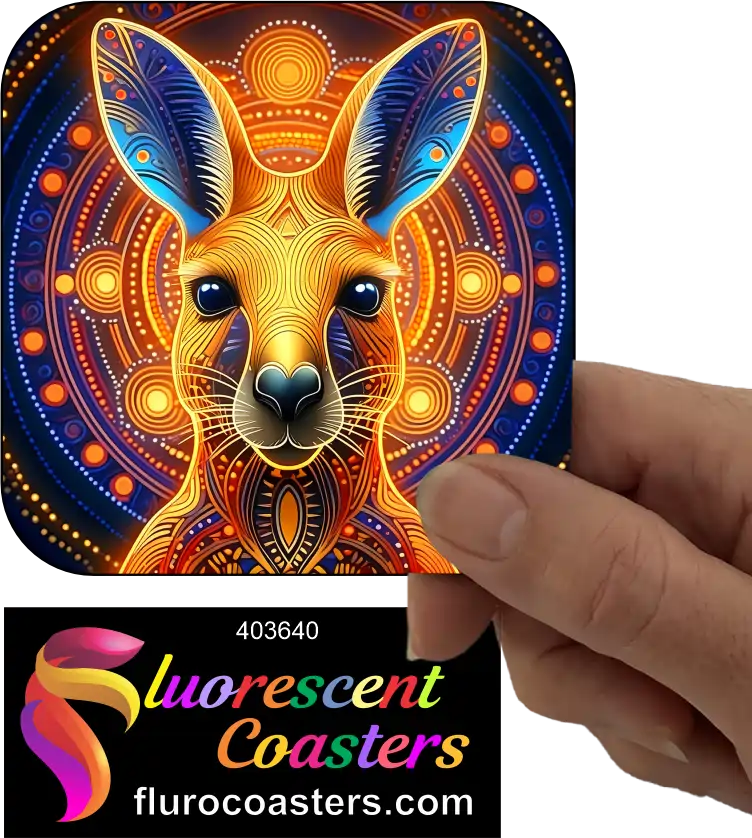 Fluorescent Coasters - Kangaroo Aboriginal Abstract 1, Australian Wildlife, 403640