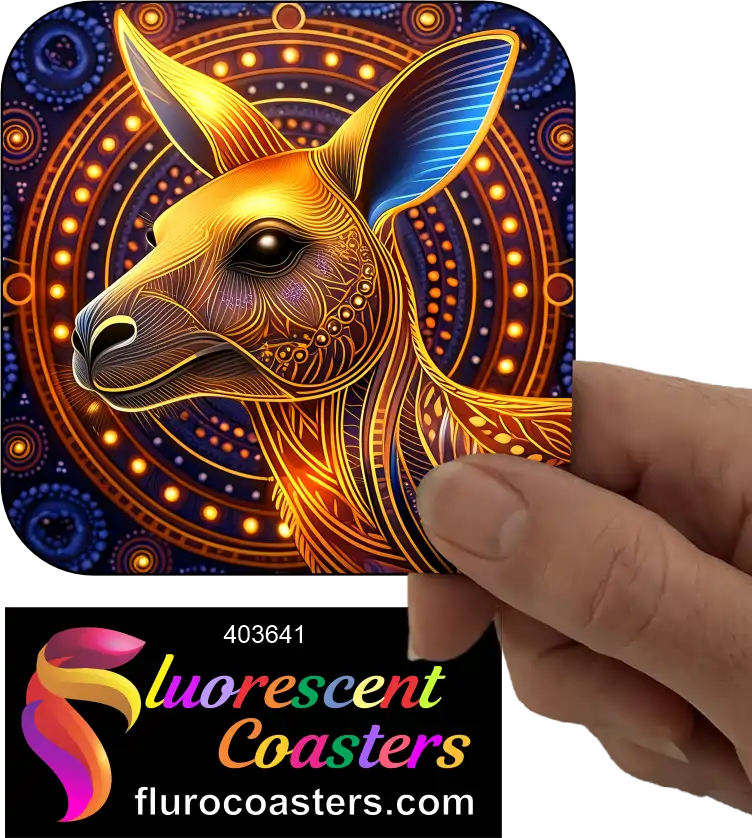 Fluorescent Coasters - Kangaroo Aboriginal Abstract 2, Australian Wildlife, 403641