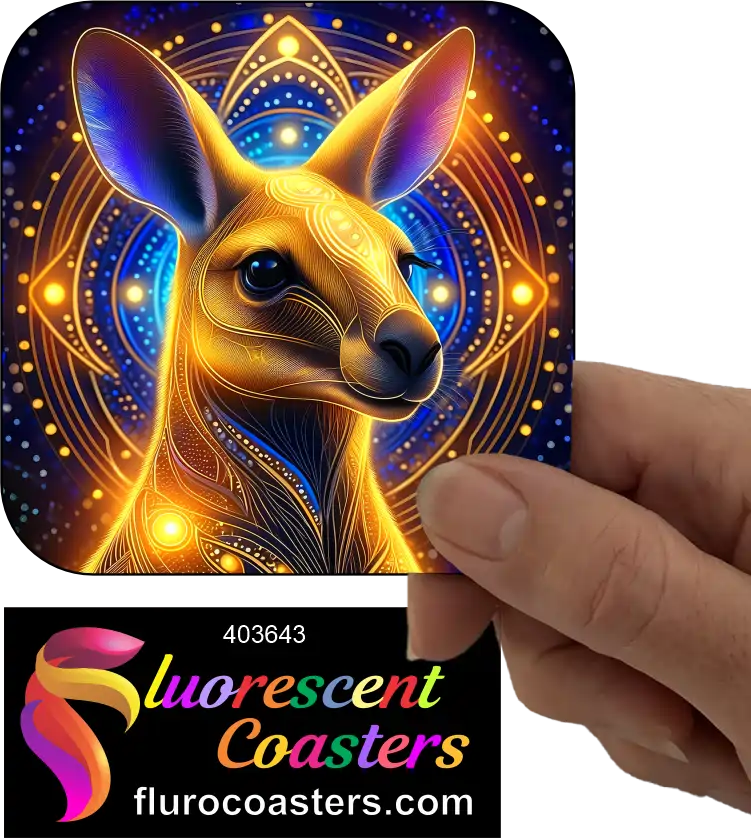 Fluorescent Coasters - Kangaroo Aboriginal Abstract 4, Australian Wildlife, 403643