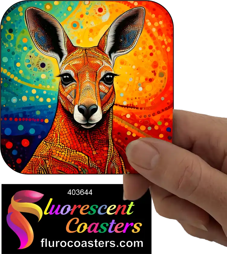 Fluorescent Coasters - Kangaroo Aboriginal Abstract 5, Australian Wildlife, 403644