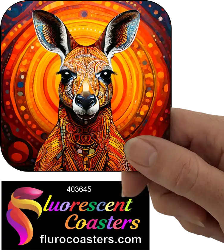 Fluorescent Coasters - Kangaroo Aboriginal Abstract 6, Australian Wildlife, 403645