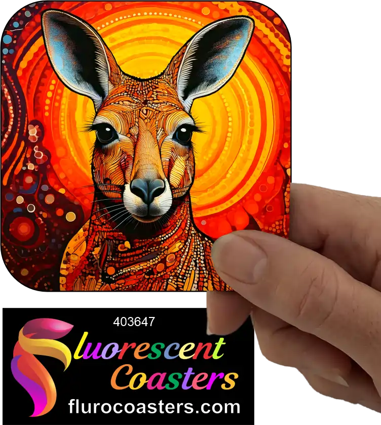 Fluorescent Coasters - Kangaroo Aboriginal Abstract 8, Australian Wildlife, 403647