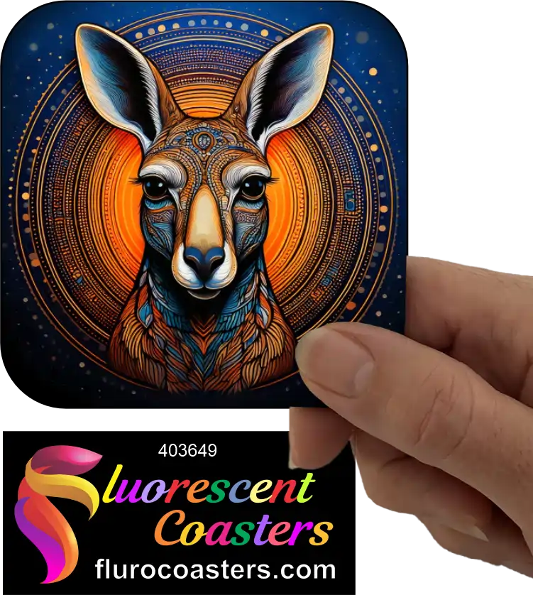 Fluorescent Coasters - Kangaroo Aboriginal Abstract 10, Australian Wildlife, 403649