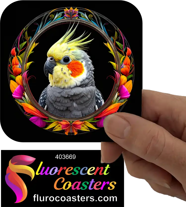 Fluorescent Coasters - Cockatiel Frame 2, Birds, 403669