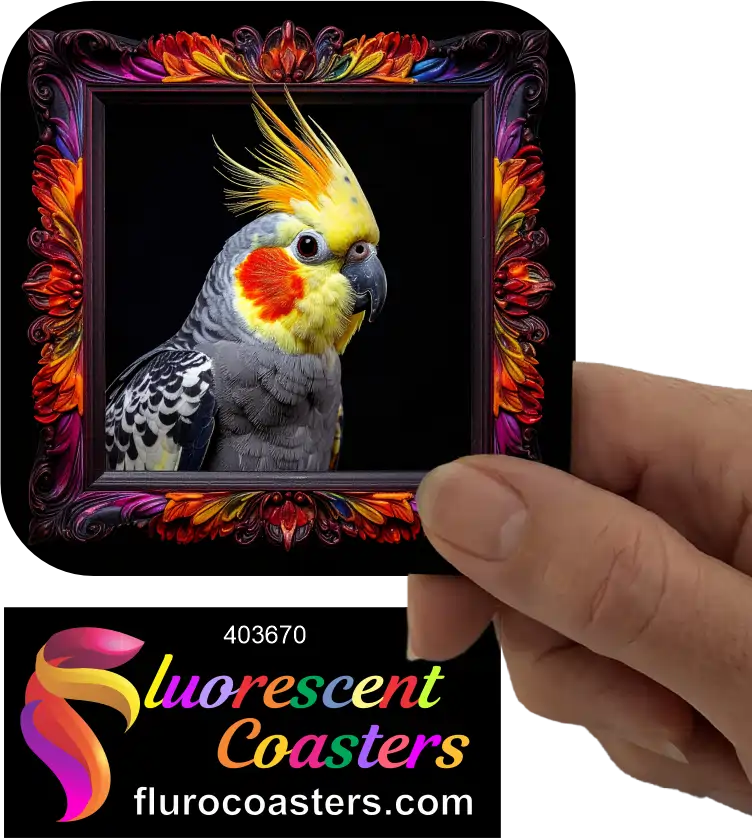 Fluorescent Coasters - Cockatiel Frame 3, Birds, 403670