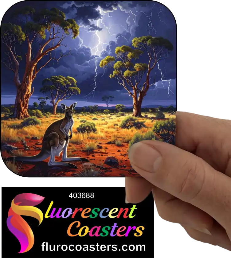 Fluorescent Coasters - Kangaroo at Night 2, Australian Wildlife, 403688