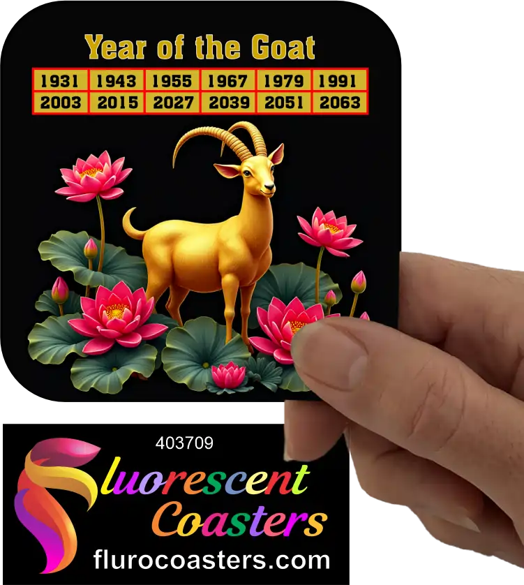 Fluorescent Coasters - Chinese Year Of The Goat, Festivities / Religion, 403709
