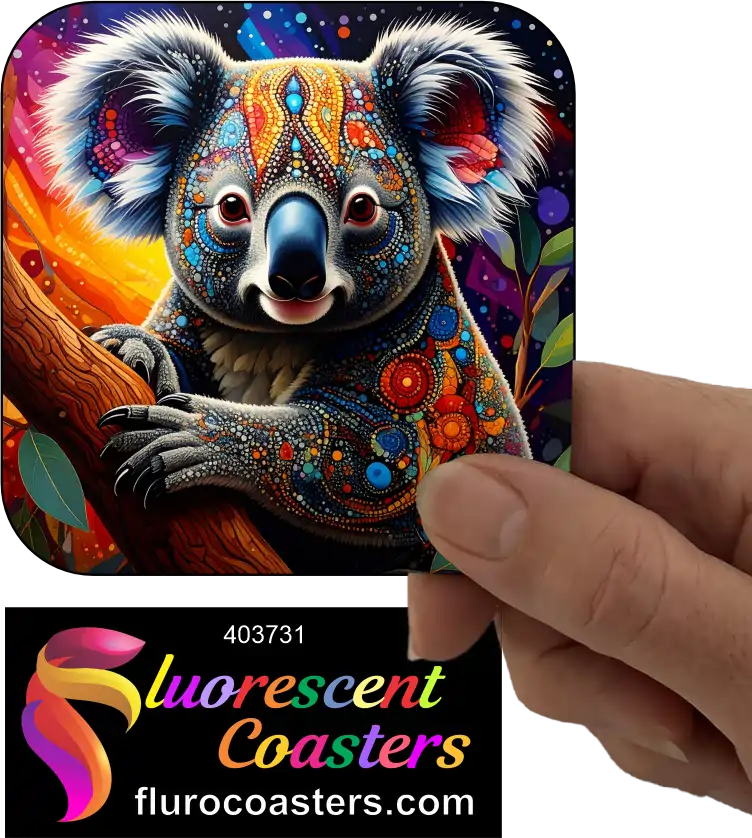 Fluorescent Coasters - Koala Aboriginal Art Theme 3, Australian Wildlife, 403731