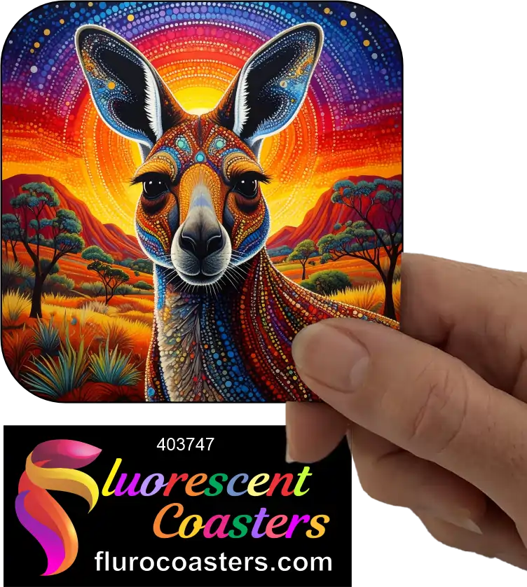 Fluorescent Coasters - Kangaroo Aboriginal Art Theme 3, Australian Wildlife, 403747