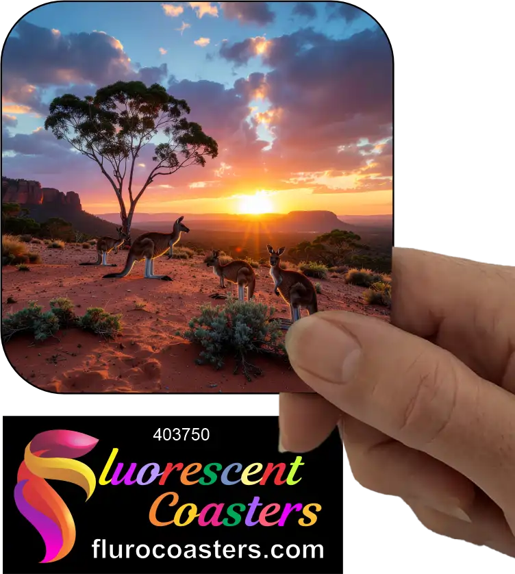 Fluorescent Coasters - Kangaroo Outback 2, Australian Wildlife, 403750