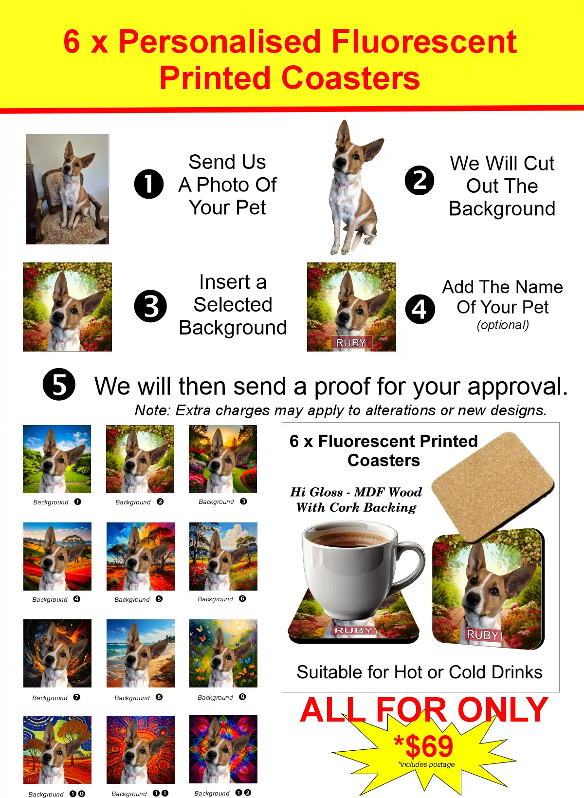 6 X Personalised Pet Coasters - Add your Photo